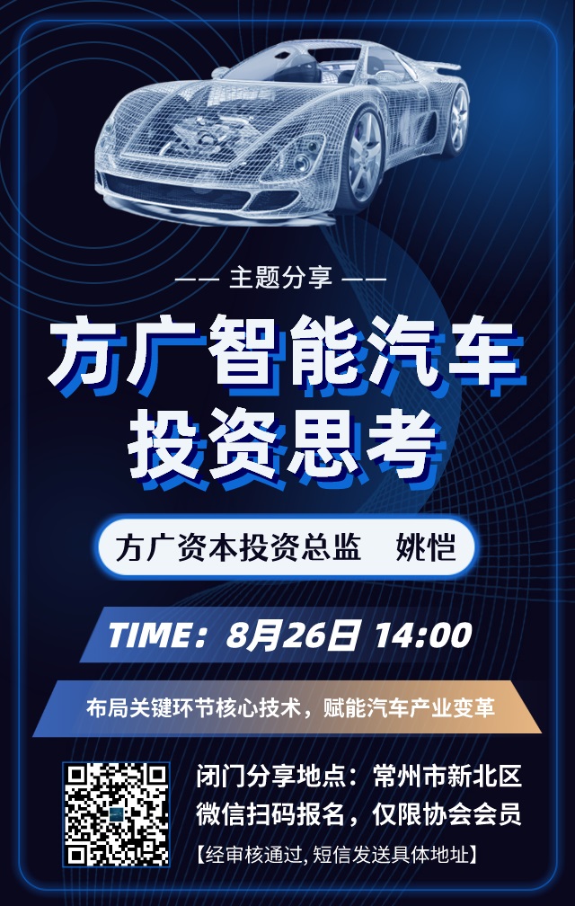 8月26日14:00 本周五下午 方广资本投资总监姚恺 现场为大家分享《方广智能汽车投资思考》,赶快扫码报名吧!