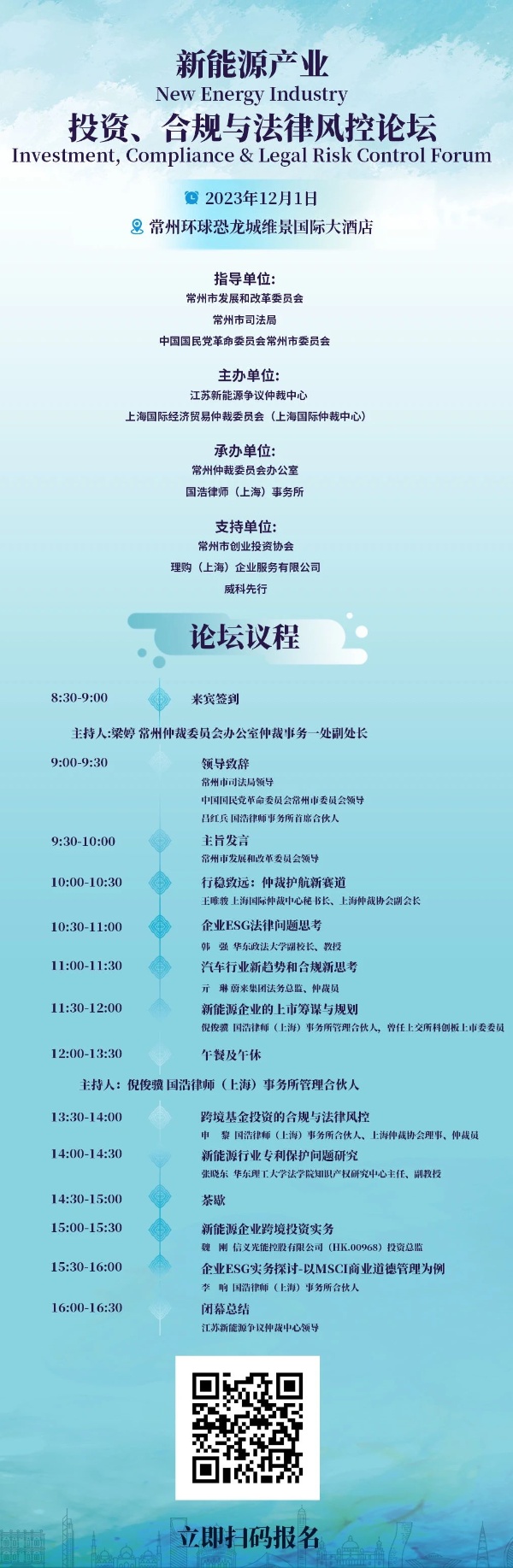 邀请函 | 12月1日 新能源产业投资、合规与法律风控论坛即将盛大开启