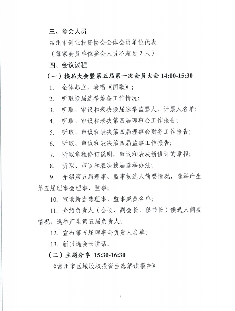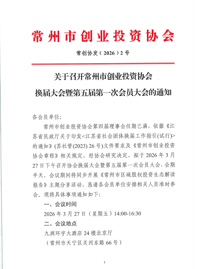 会议通知 | 关于召开常州市创业投资协会换届大会暨第五届第一次会员大会的通知