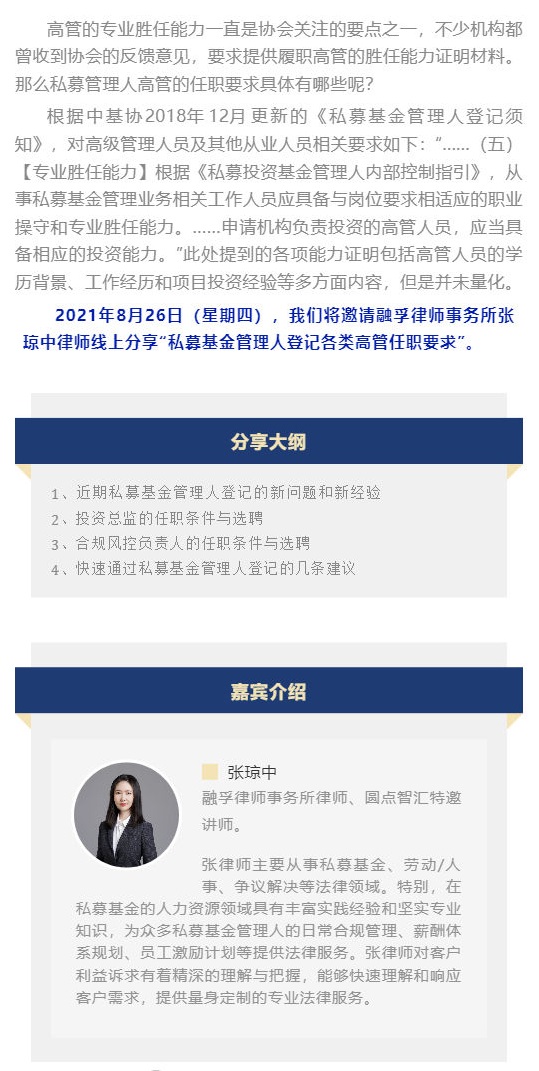 线上直播|私募基金管理人登记各类高管任职要求