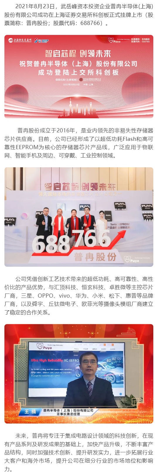 会员动态 | 武岳峰资本投资企业普冉股份科创板挂牌上市