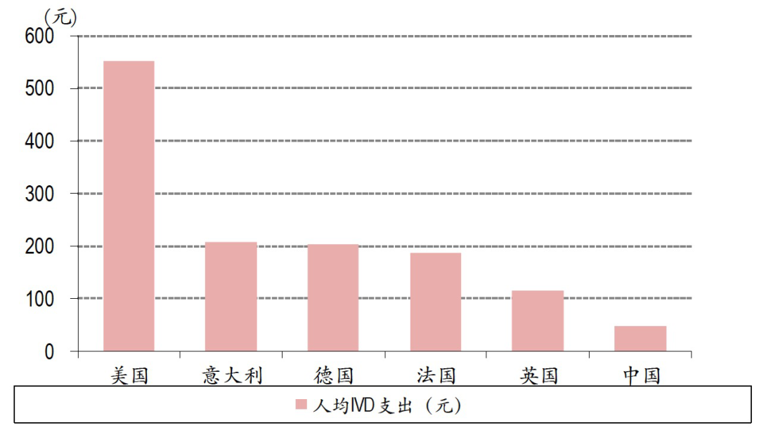 2018年各国人均IVD支出情况(数据来源:European IVD Market statistics, Grandview research,中银证券)