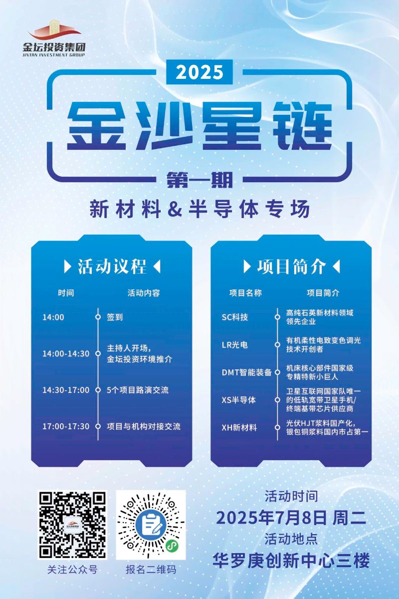 第一期项目路演活动将于2025年7月8日召开,本期主题为“新材料&半导体”。