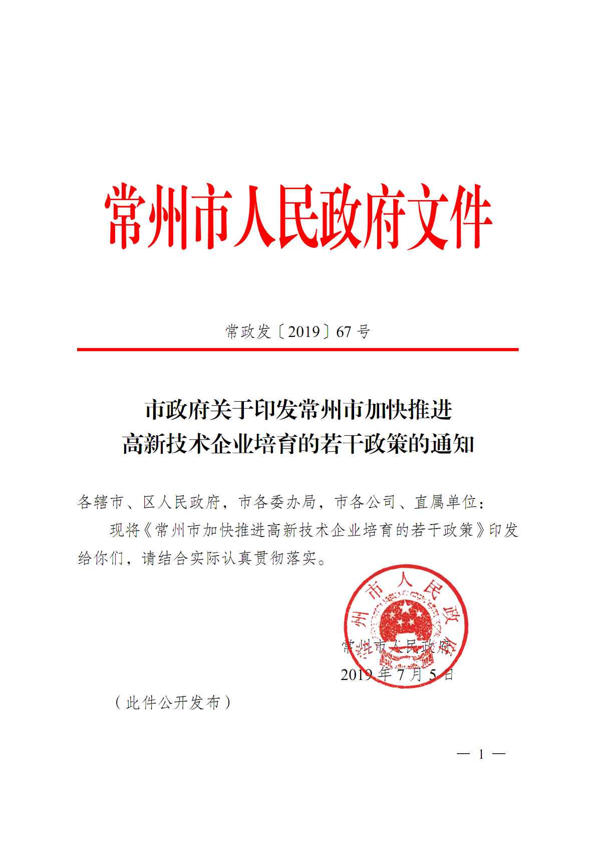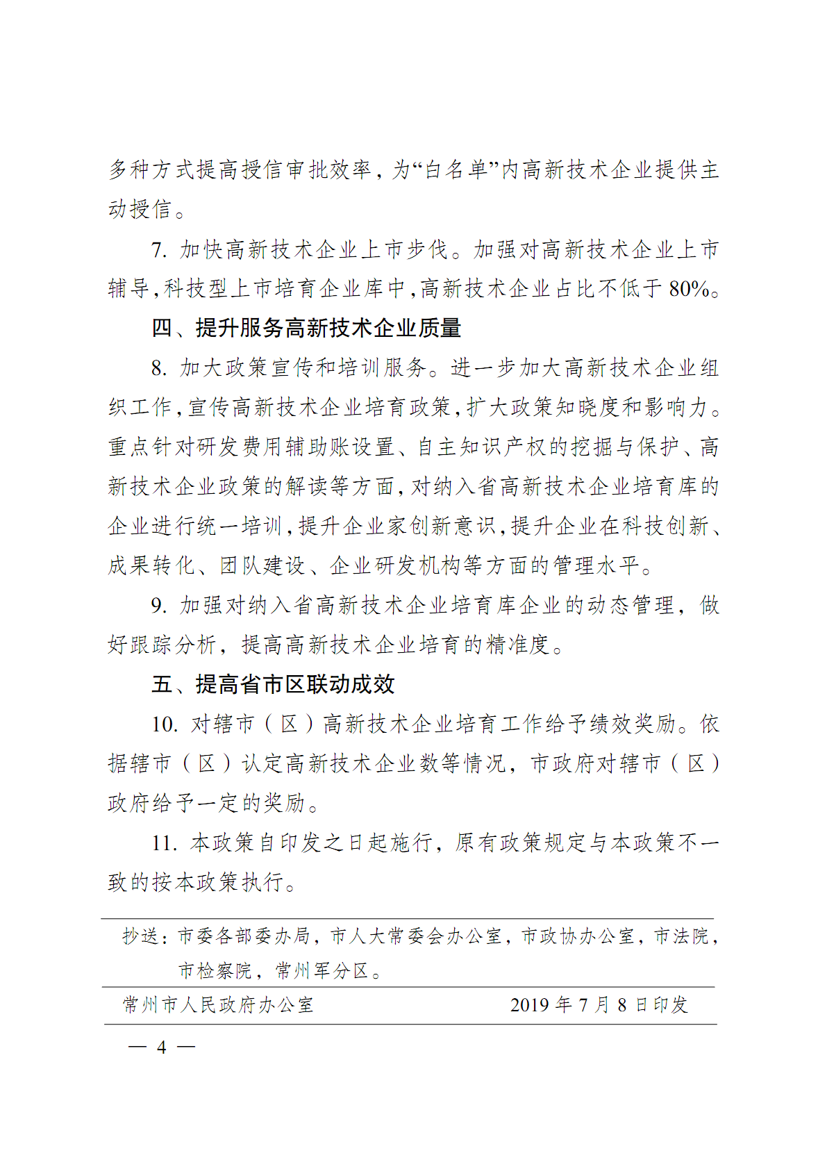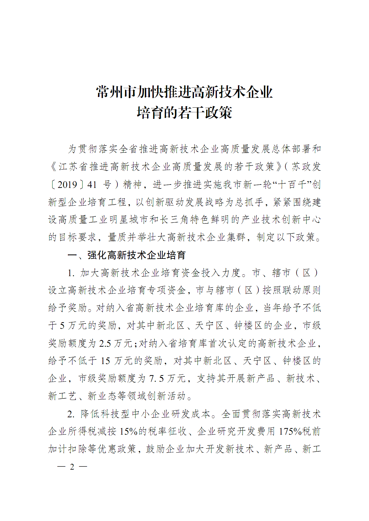 市政府关于印发常州市加快推进高新技术企业培育的若干政策的通知