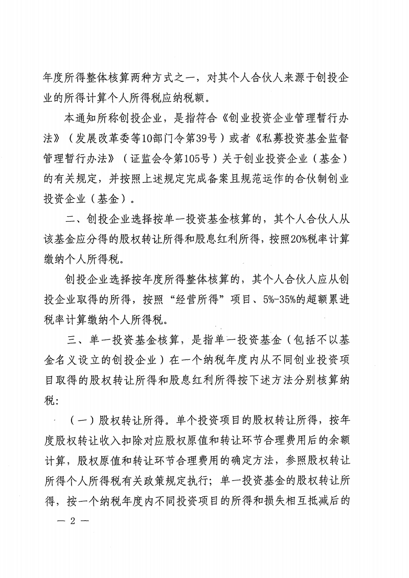关于创业投资企业个人合伙人所得税政策问题的通知